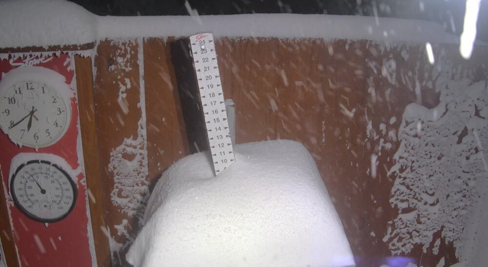 12. Yeah it was for sure snowing… Lookout cam had picked up 4” today when I wrote that. Now up to 7” at 2am, ha. Didn’t mean for it to come off like it wasn’t snowing, but to get some of these gaudy amounts 18-24”+ thrown around, I would’ve liked to see a bit more earlier today. The nocturnal flow blocking has helped a lot, congealing into a more laminar classic band.