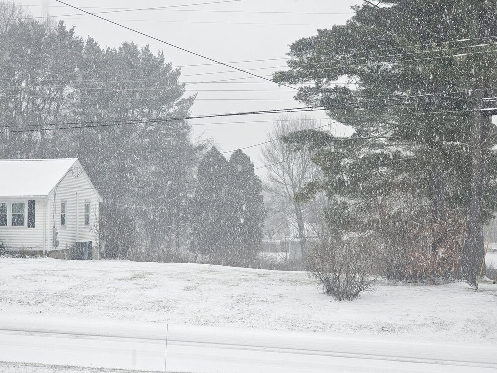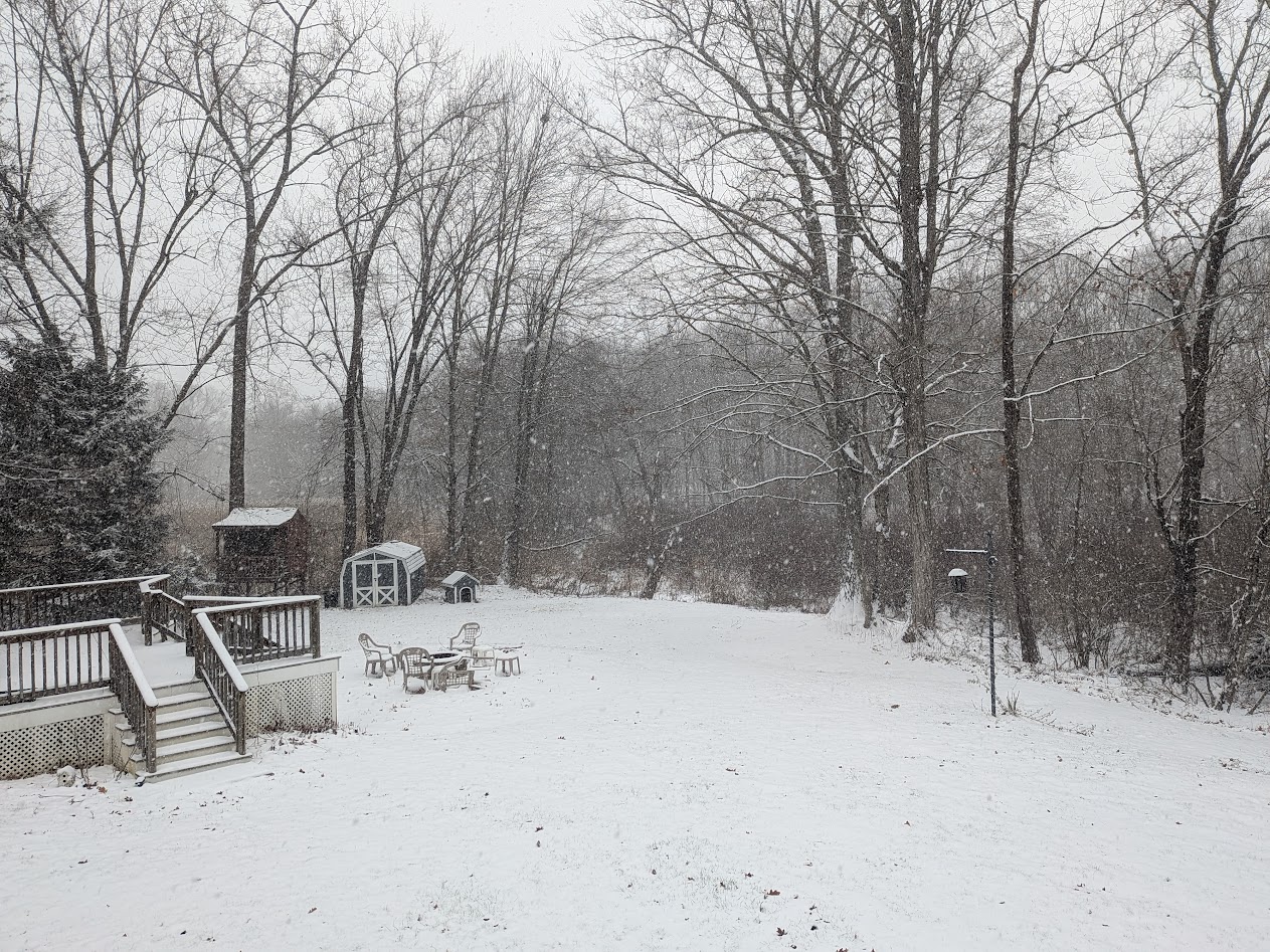 Snow growth not quite as good now as the wind kicks up a little but no sleet, moderate snow. Elevation obviously not a factor because I’m only at a few hundred feet. Up and in for the win, I guess.