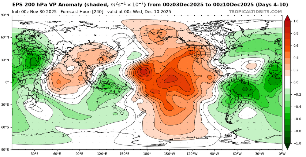 A new tropical oscillation called the TWISO has been recently discovered. So maybe the reason we are getting a strong MJO 6 gradient pattern in early December is somehow related to it being out of phase with the MJO. Plus the split forcing between the Maritime Continent and the Western Hemisphere could also be creating an interference pattern. Models showing a MJO 6 interference gradient pattern in early December https://www.pnas.org/doi/10.1073/pnas.2511549122