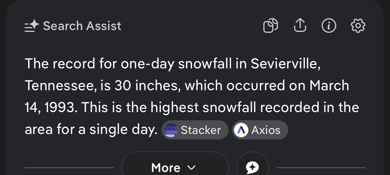 Anyone know single day snowfall record for Sevierville? I tried finding records but couldn't and asked MRX but they haven't responded yet. Asking incase it gets surpassed this weekend.
