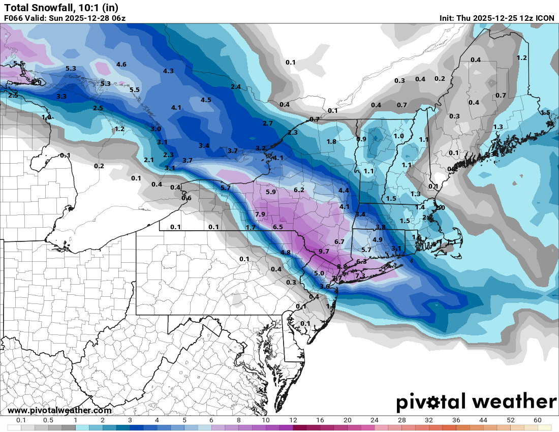 Icon, RGEM, RRFS all NE at 12z small bump with Icon .. I think ground zero will end up being an axis from Binghamton to BDR 15 miles either side of that line -