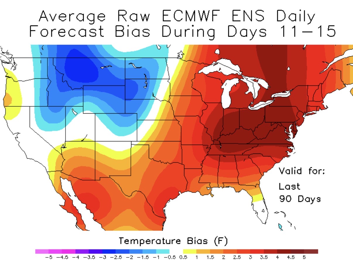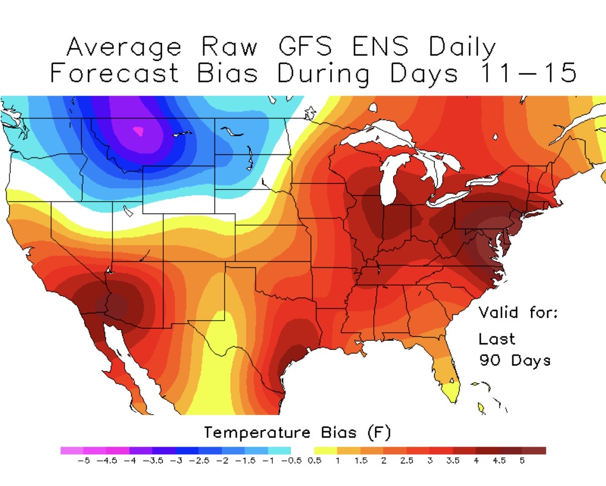 This is actually a decently good observation. I’d urge caution with believing the models considering how poorly they’ve performed, especially with their warm bias. Shown below are the GEFS and EPS forecast biases two weeks out over the last 90 days (courtesy of @GaWx). That’s all you need to see.