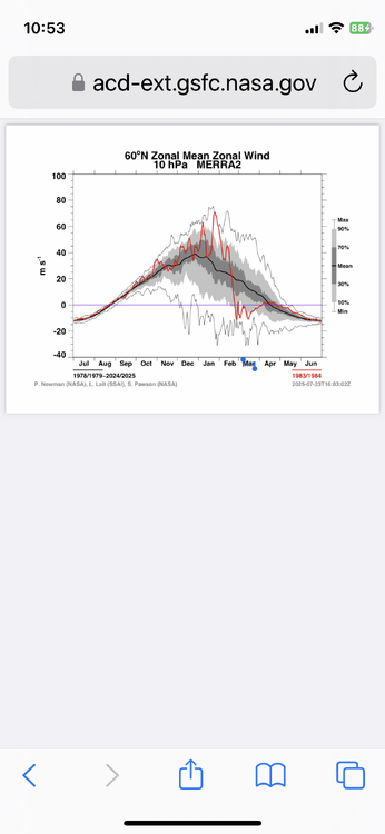 7. Thanks as always, Don. The weakest zonal winds/wind reversal on your bottom chart (Euro zonal wind forecast for 12Z on 11/22/25) actually are within 60-90N (blue shades) rather than south of 60N. For 60N at 10 mb, this actually shows a very weak wind of a mere +5 on 11/22 (and is dropping) and that’s still ~3 days before the EPS mean drops to 0.