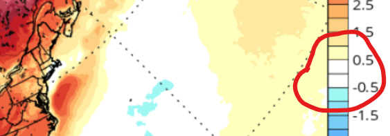 That’s always been there. Might be a SST thing but it will be warmer verbatim if that pattern happens/