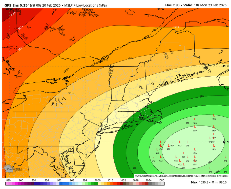 10. The GFS feels like that very far western ensemble member that keeps giving you hope. Except this time, it hasn't budged while the eastern envelope has shifted closer towards it. We're narrowing the goal posts: the western post staying put and the eastern post shifting west. Usually we see a 50/50 compromise, maybe 40/60. This time maybe 25/75 or 20/80. It's just been unusual this go around seeing models move towards the GFS. Again, Delaware and coastal Jersey seem to be the place to be right now