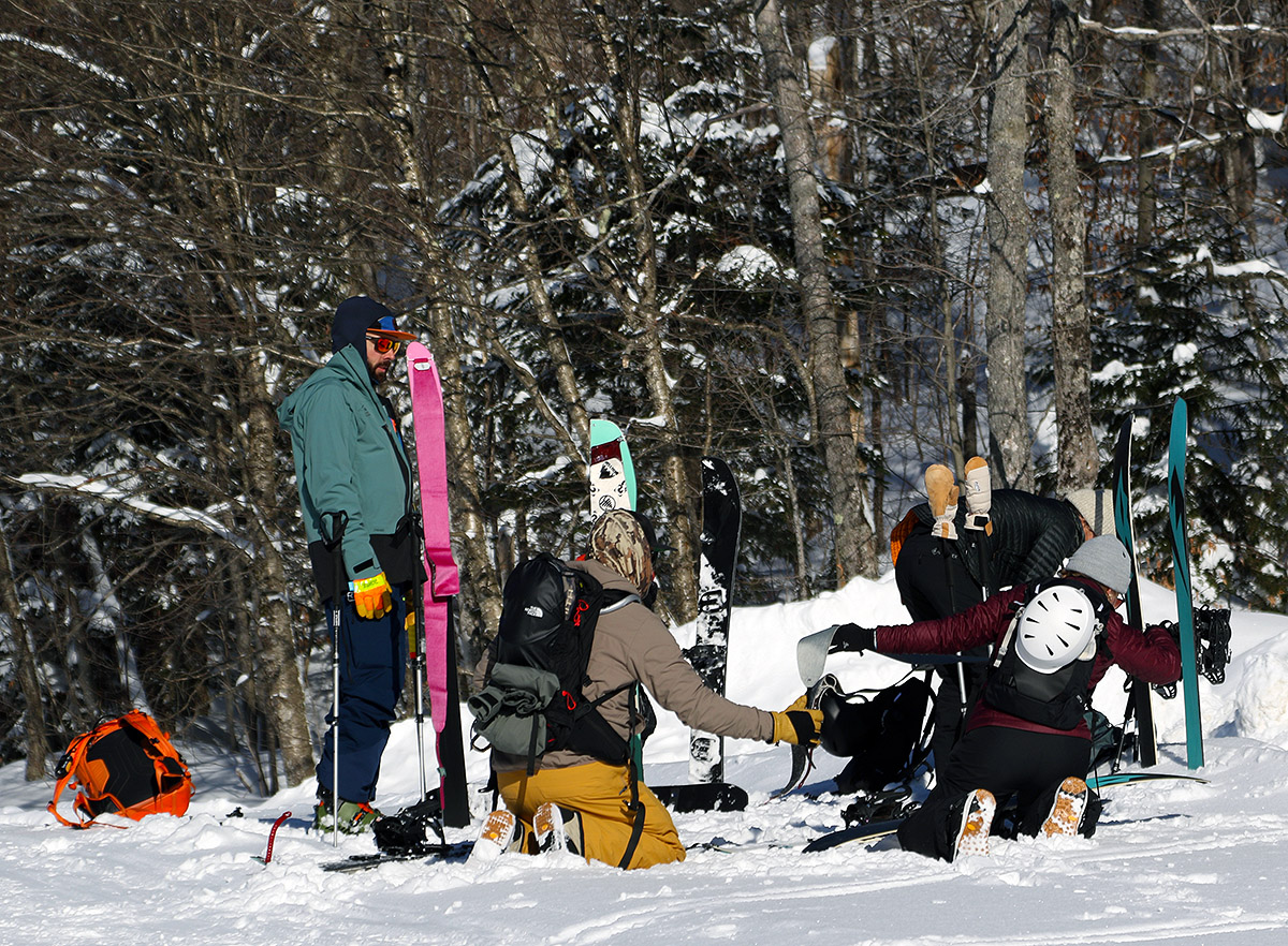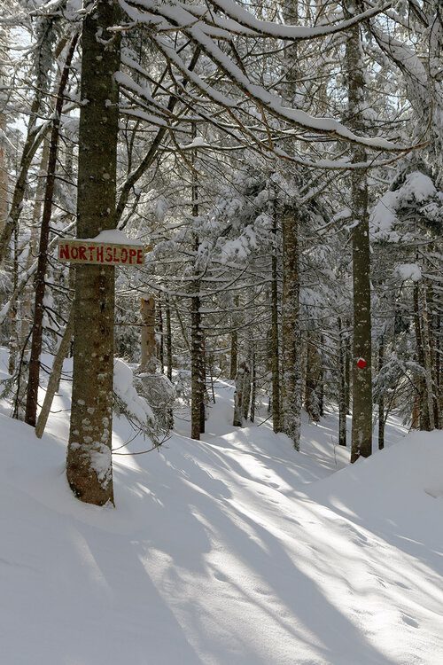 3. We were on the fringes of Winter Storm Devin up here in Northern Vermont, but Bolton Valley still picked up 3 inches of new snow from the system to top off the current powder depths. And thankfully, today was much warmer than yesterday – it was 15 F when I arrived in the Bolton Valley Village in the late morning period, which was quite a contrast from yesterday’s 2 F temperature at the start of my ski tour. Today I toured more on the eastern side of the Bolton Valley Nordic & Backcountry Network. I ascended the Bryant Trail up to and around the Bryant Cabin, then headed out on North Slope to catch some glades there with a descent via Gun Sight in the Gotham City area, and I finished off with some of the lower glades near the Telemark Practice Slope. The powder skiing continues to be absolutely fabulous, with the accumulations from Winter Storm Devin coming in around 6% H2O based off my snow analyses in the valley. That meant it topped off the current snow quite well and maintained the right-side-up density gradient in the powder. Between settling and compression from the new snow, total powder depths were about the same as what I encountered yesterday, with 12-15” around the 2,000’ level and 15-16” in the 2,500’-2,700’ elevation range. We’re definitely into the holiday week now, and with the great snow conditions, it’s not surprising that the resort is seeing a lot of visitors. Arriving in the late morning, they were already having people shuttle up from the Timberline parking lots, but thankfully some early morning folks were leaving at that point, and I was able to grab a spot in the second lot for backcountry/uphill skiers. The upper backcountry parking lot was actually blocked off for lessons, and while I was out on my tour I saw a couple of groups out with backcountry instructors, so it’s nice to see that people are taking advantage of the holiday week and the great powder conditions to get out there and become familiarized with backcountry skiing.