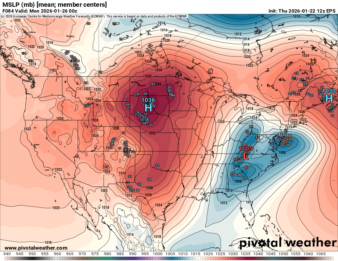 I have no super intelligent commentary to offer on the differences between the EPS and GEFS, but i thought I would make this gif which shows the differences in SLP. Valid Sunday evening/Monday 00z. Easy way to visualize why the GFS 12z was more "friendly" to those of us along/east of 95. We want that low and transfer to the coast to be more south. I assume at this range its probably time to stop looking at ensembles too