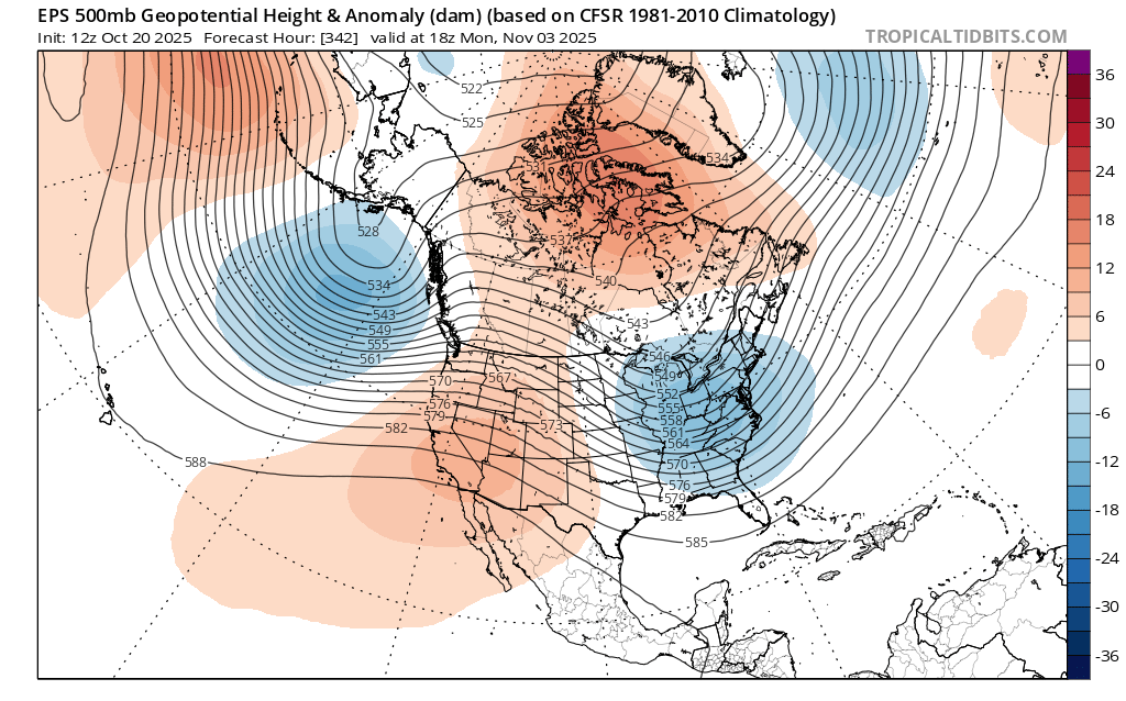 It's 91/66 an sure enough I am outside clearing brush like a common inmate such as Cool Hand Luke, except I am not very cool, and it is sure not cool outside. Hell goes on in south Texas. Us getting down to average lows like 57 degrees is a RARITY. We are averaging 10-13 degrees ABOVE avg for lows. No end in sight, it will continue hot and humid likely right into November, and absolutely no RAIN for the foreseeable future. Fuels such as grass and scrub are drier than a proverbial popcorn fart. One spark and the entire state goes up and me with it. What a relief! I can't work in this hot dry torrid environment. This part of the world is CURSED. No doubt about it. Its deep Autumn everywhere but south Central Texas where HELL SUMMER reigns supreme. That subtropical high is made of steel and all other weather systems just bounce off it. Its the Ultimate Klingon Anti Rain and Anti Cold Front Shield.