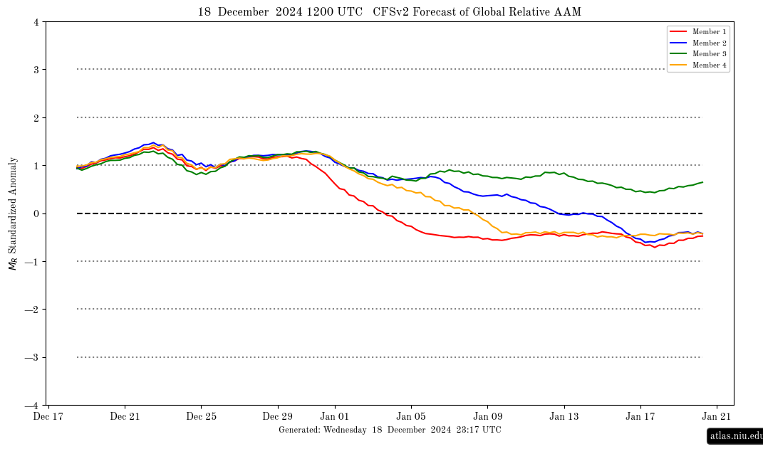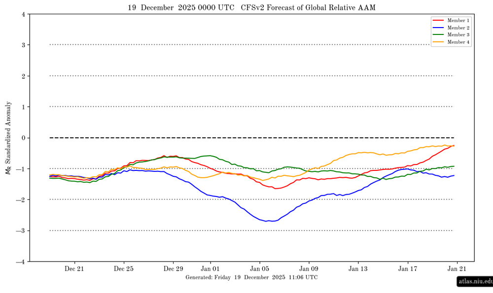 I agree that this is nothing like Dec 2024 at this time, when the Euro Weeklies were much colder and this was the NOAA weeks 3-4 outlook, one of the coldest on record for the SE half of the US: AAM forecast had this then: Current AAM forecast: A somewhat better comparison might be this time in Dec of 2021, when there was a similarly very strong -PNA and Christmas was looking very warm.