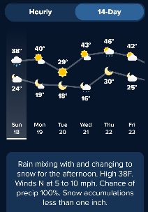 Radar seems to be filling in again. A little over an inch. 29 degrees. Just did the beer run for the weekend. Filled the wood bin. The oil guy almost blew a knee out walking to fill my tank. Its great walking until it isn't. Wings and nachos ready to fly. -
