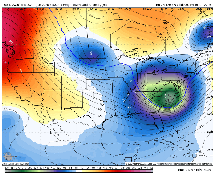 I highly doubt there is precedent for Pacific tropical features (during mid January) feeding into a cold front over our area along the EC of North America. Webber mentioned yesterday(finally remembered my source) that it was a pretty awful job by the GFS. Maybe late fall that could happen? No other model has that. I think it is a pretty massive GFS error. In fact, the 12z GEM provides no support for either the 15th or 17th (GFS solution) whatsoever. I think the GFS has a pretty signifiant bias right now at over-amping everything at times. However, it can sniff out weather systems like this, because of that bias. For now though, I have the GFS as an outlier and at a level where it almost has to be tossed, but let's see if the Euro has something. What is plausible is a cold front tapping the Gulf, and I won't rule that out with the 17th system. Conversely, the GEM looks suspiciously anemic, and that would be a red flag for that model. A strong cold front w/ short waves in tow...should have some dynamics. The truth is probably somewhere in between the GEM and GFS at 12z.
