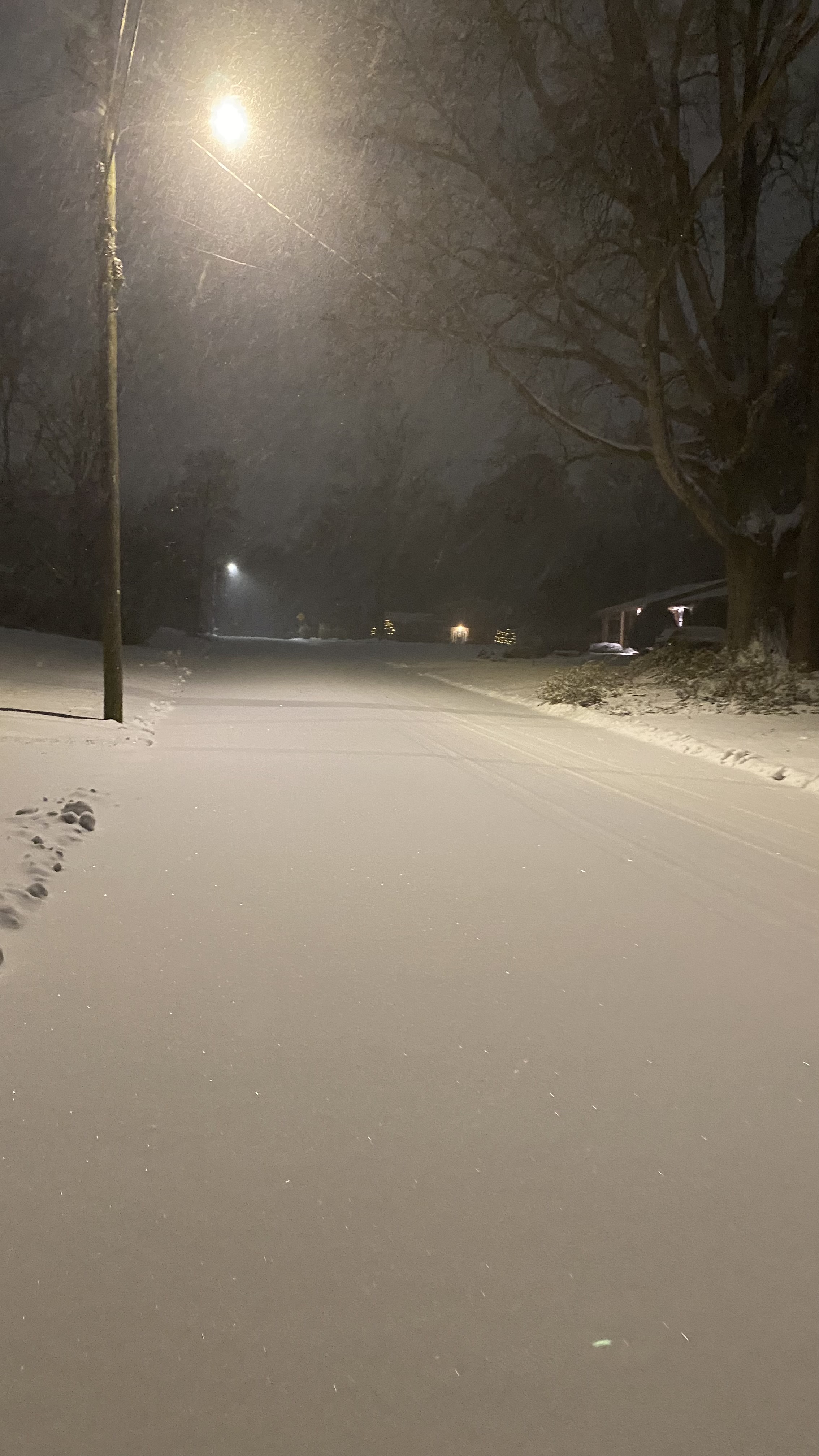 Greenville, NC blizzard-like conditions here at 11pm. Snow & blowing snow with at least a foot on the ground. Couldn't open the front door of my apartment building because it was blocked by a drift. Quite insane over here. -