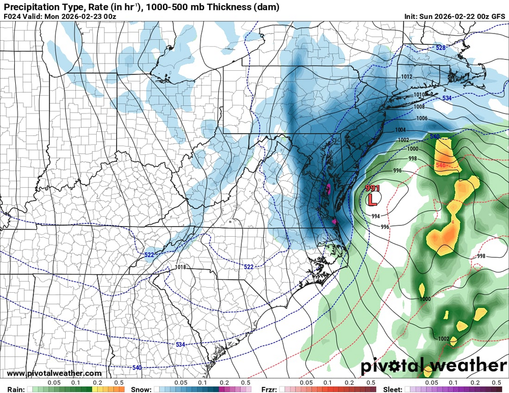 For NW burbs: the GFS has been ticking east with where the H7 low closes off and it's general track. The small ticks east with that is why areas further NW have been losing some QPF/snow. Again, we just don't know where that will set up right now and 8-16" throughout Berks and the Lehigh Valley is a good call based on current data. What will happen tomorrow is the precip shield will begin to blossom as the baroclinic leaf expands/PVA rotates into the coast with the trough tilting negative. I would not be surprised to see snow as far back as Pittsburgh. Then, as the mid-level lows close off, the larger precip shield will begin to collapse back towards central/eastern PA as the secondary circulation fronto bands rapidly develop. Also, there appears to be an IVT develop across Central PA. You will likely see a dual band structure with the coastal low: one closer to the coast with 850mb fronto and one further NW with 700mb fronto. There will inherently be some subsidence outside of those bands. These bands will be rotating off the ocean from SE to NW. Who ever can catch the pivot point of either of those bands will score the jackpot. Now one of the biggest differences between our models remains just how stalled out our surface low gets, and therefore how long those intense frontogenesis bands have time to rotate inland. The NAM remains the most amped outlier and tucks/stalls the system for hours, so these bands can extend much further inland. The RGEM is less amped and quicker, so the bands are quick to depart eastward. In summary, this has nothing to do with the storm track anymore. The differences really come down to how amplified and stacked these mid-level lows get.