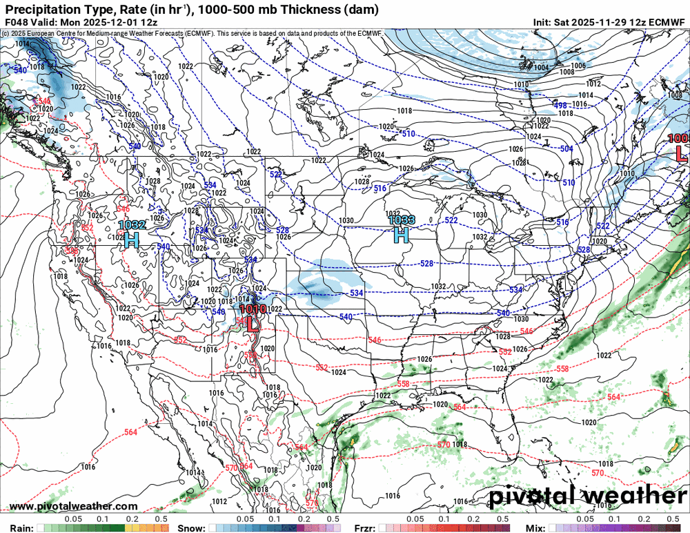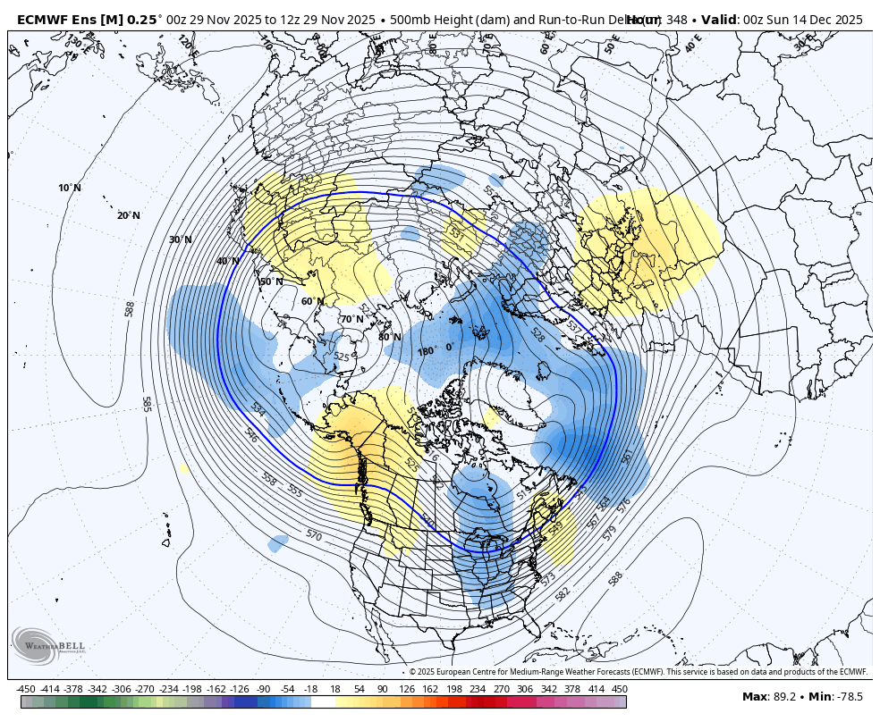 Good cold repeatedly filtering into New England from SE Canada on much of the 12z Euro run. -