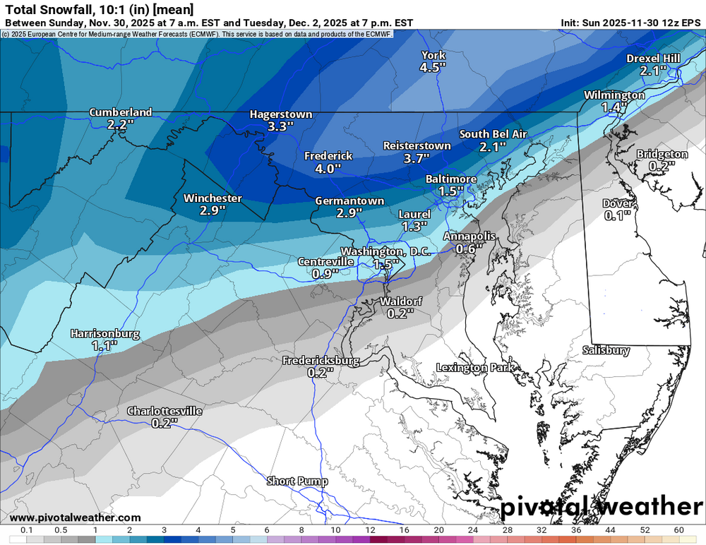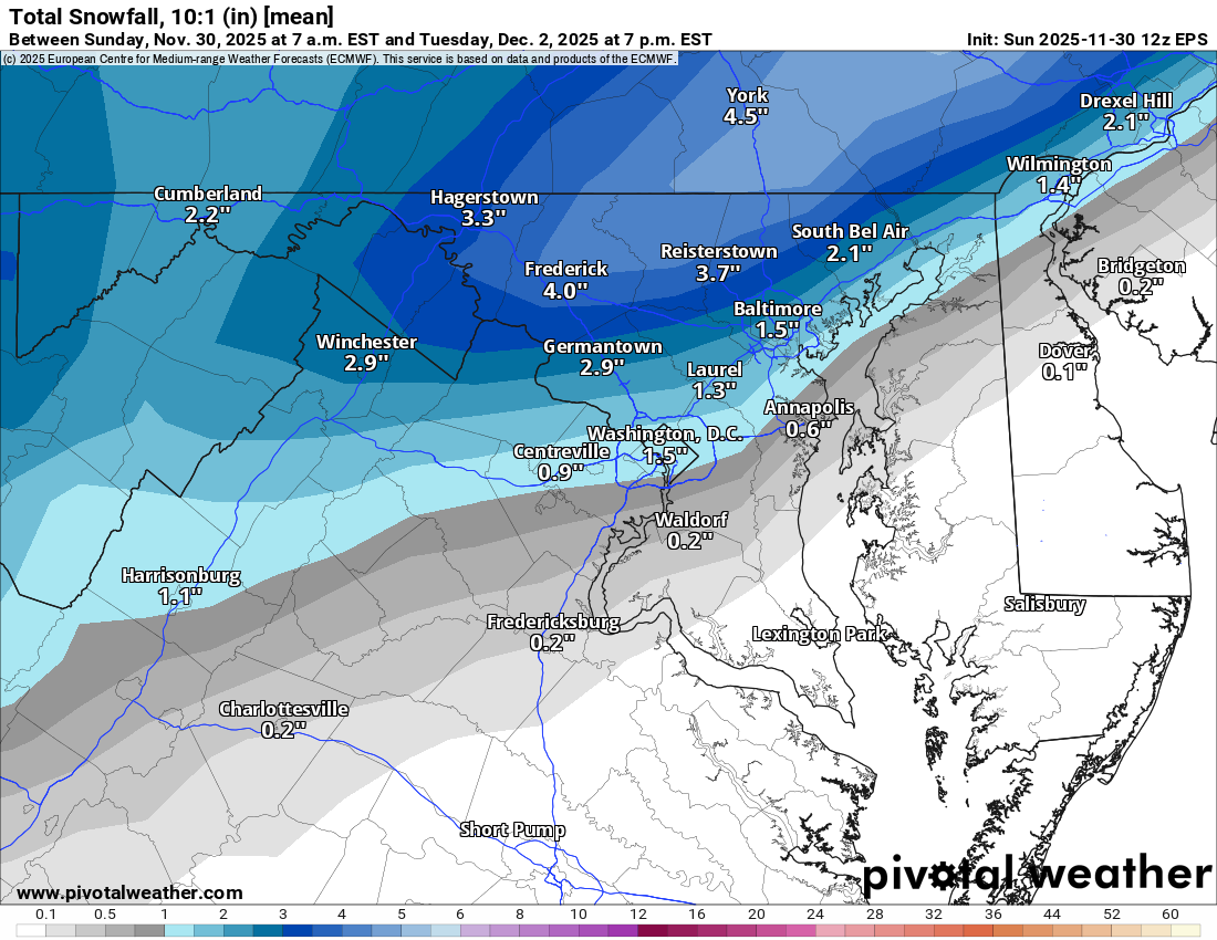 Euro is weak and light rain, little bit of snow for Mid Atlantic