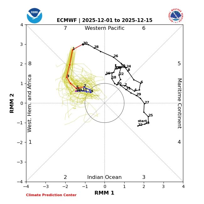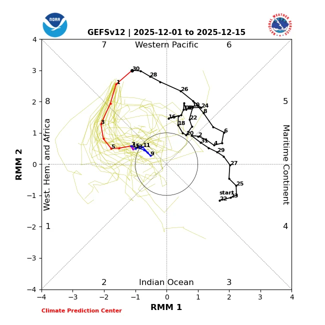Today’s 2 week MJO forecasts: GEFS/EPS agree on longest winter phase 8 in 50 years that starts on Wednesday: