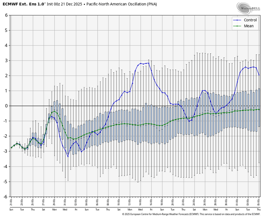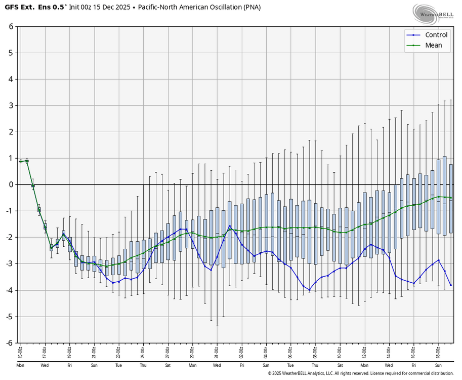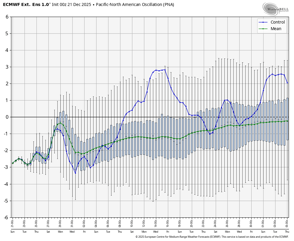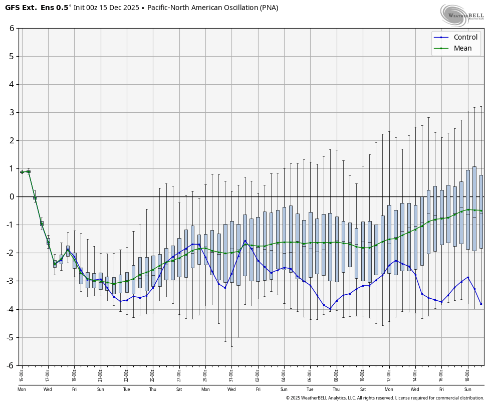 The models are pretty unanimous on continuing the -WPO into Jan and the strongly -WPOs in Dec strongly support a -WPO as we know. We also know that the -ENSO -PNA stats since 1983-4 suggest good support for a +PNA Jan. But both the Euro Weeklies and extended GEFS continue to show a -PNA throughout Jan (see images below). Are you saying these models are totally wrong and will correct toward +PNA? If so, why do you think they’re going -PNA? Persistence even though I’ve seen the EW predict PNA changes and do well.
