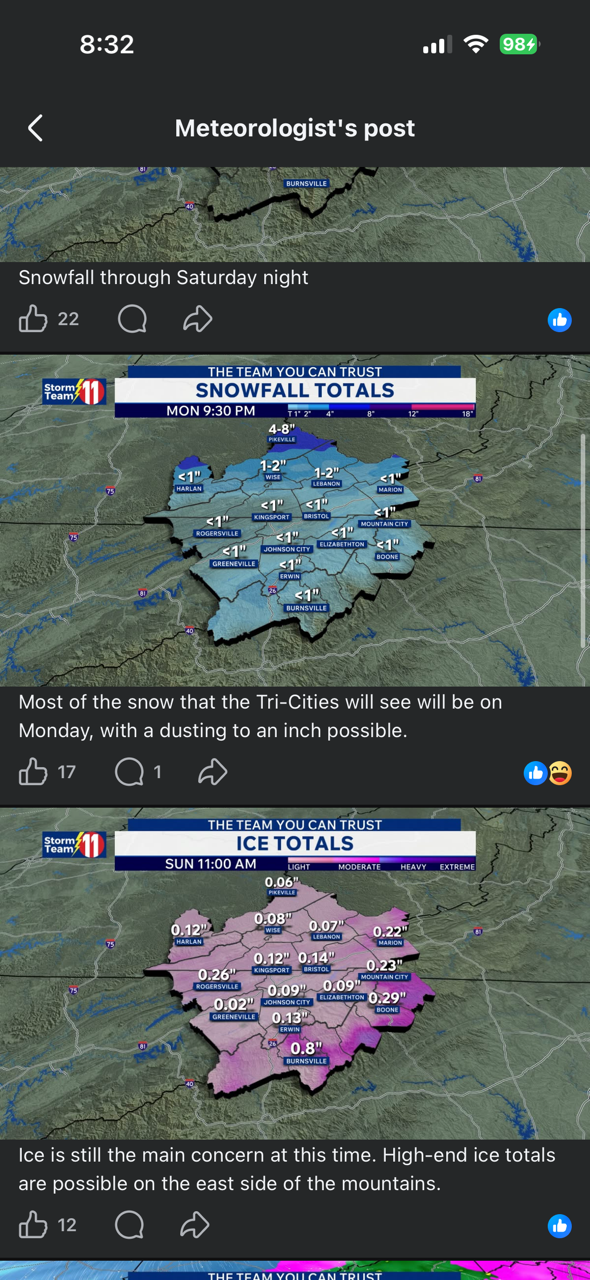 I'm very curious to see how the surface temps play out in east TN. MRX has Knox hitting 42 and HRRR currently shows 40 peak, but 3k NAM only 35. We'll most likely have a nice heavy cleansing rain to wash away the slop, but it'll be interesting to see how much the surface temps climb with this much variation in the modeling still. Also will be interesting to see what if any backside thump of snow is possible as the 850s crash.