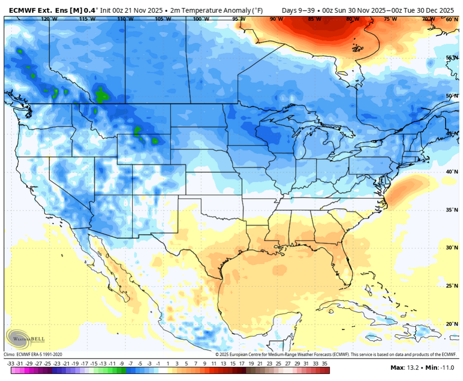 Domination in the SE by mild/SE ridge in the first half of Dec has been forecasted by the Euro Weeklies for over a week. They’ve been steady as a rock. I’d be very surprised if it isn’t mild in the means.