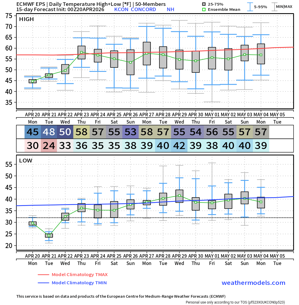 I like the ens member with a high of 35° on May 1st