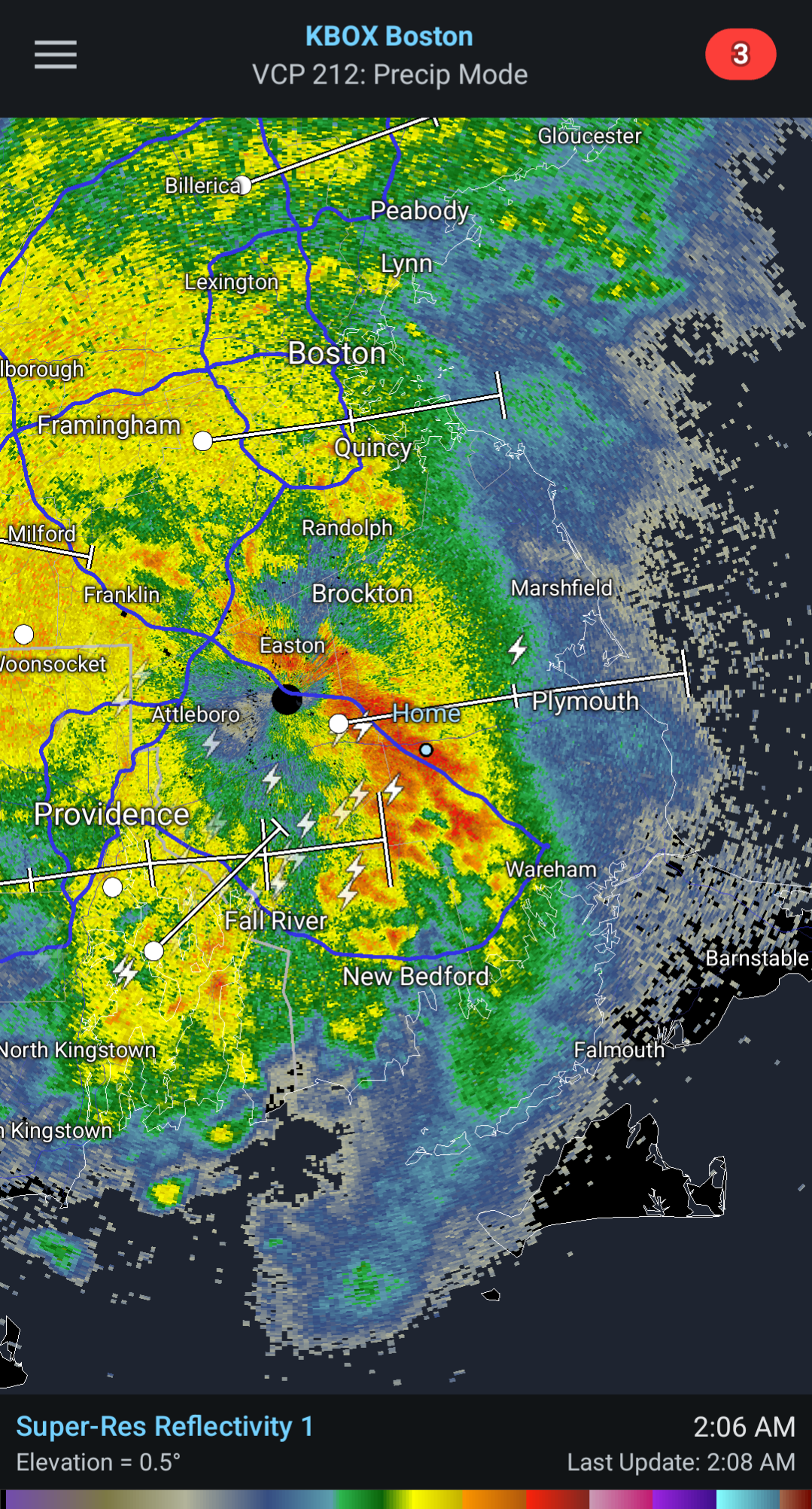 Lots of flashes and thunder with the storm rolling through, but absolutely no wind and all the lightning seemed to be cloud to cloud. Odd. Not much rain either.