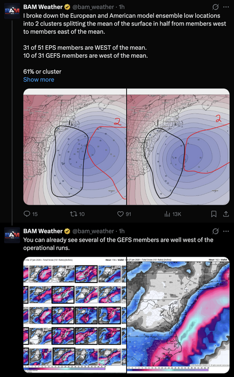 this is what he said: by the way, his 10/31 GEFS members are west of the mean is a typo, i think he meant 10/31 are east of the mean and/or 21/30 are west of the mean