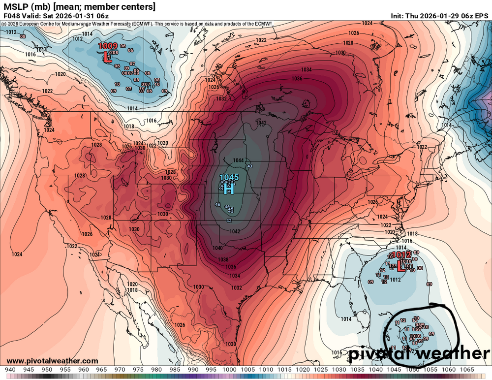 There's been this low pressure system that's bubbling up from deep in the Caribbean out ahead of this. Which is getting involved with the cyclogenesis. I think it's interfering and helping to shunt it east on guidance. So you're seeing the weird runs with a couple of lows. Wish that thing would vanish. Or get it to slingshot NW by the ULL a la 18z euro yesterday.