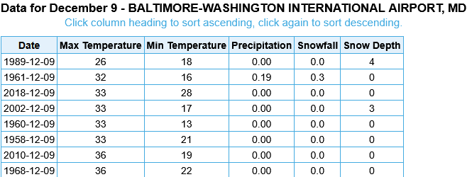 If BWI for the High stays at 32, it will be 2nd coldest high for 12/09 on record. Edit: Also 2nd Coldest Min Temperature with 14 this AM
