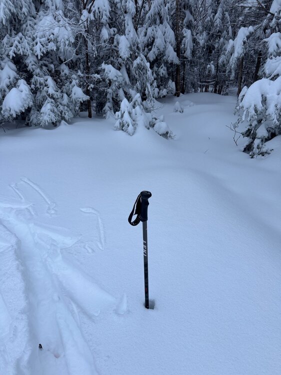 It’s true. This Saturday night event will wreck the surface but it’s going to be minimal melt, if at all, and will only lock the snowpack up tight. Then another 6-10” upslope over two days? The snowpack is bomber. The ol JSpin pole depth check on a 50” ski pole. Couple feet of base on Chin Clip? I’ve seen this trail open on a lot worse coverage ha.