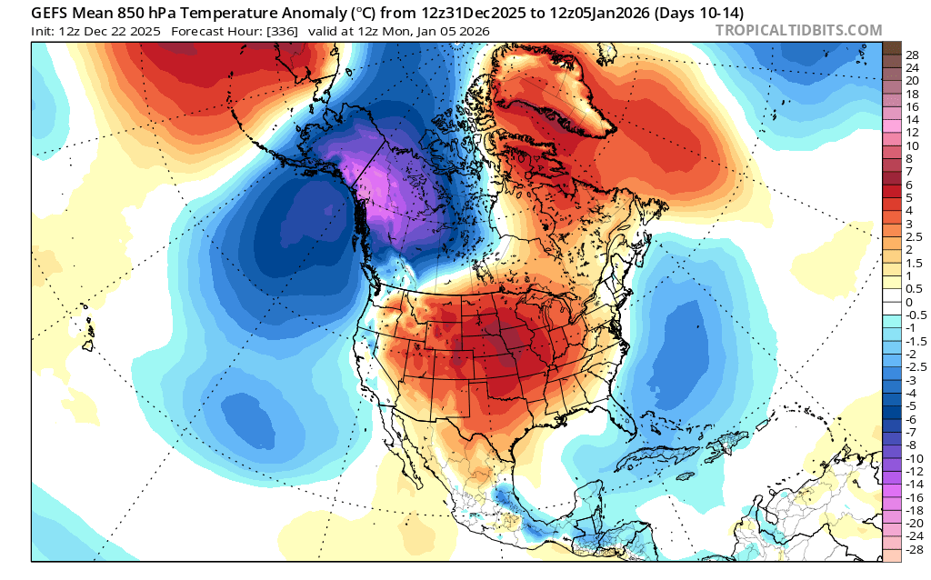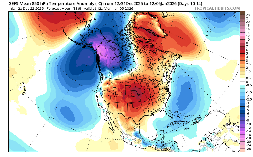 Look at how much Dec 29-Jan 4 has cooled vs 2 days ago on the EPS thanks to the stronger -NAO pushing back from the NE despite the strong Aleutian ridge remaining. Two days ago: Today: