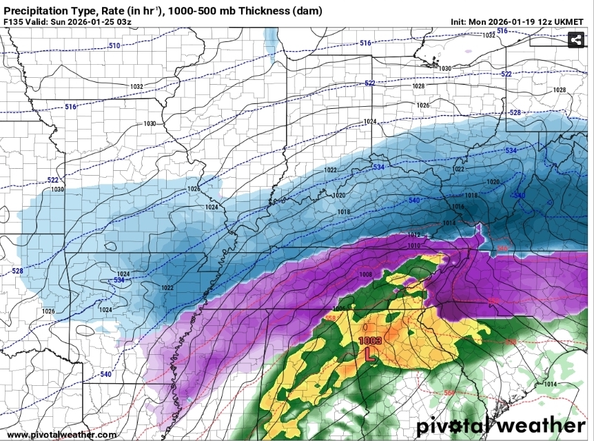 12z UKMET much further south than 0z, still tries to run low into heart of the CAD, regardless of trying to do that, it's an absolute mess of a storm across much of NC and would be bad in many ways!