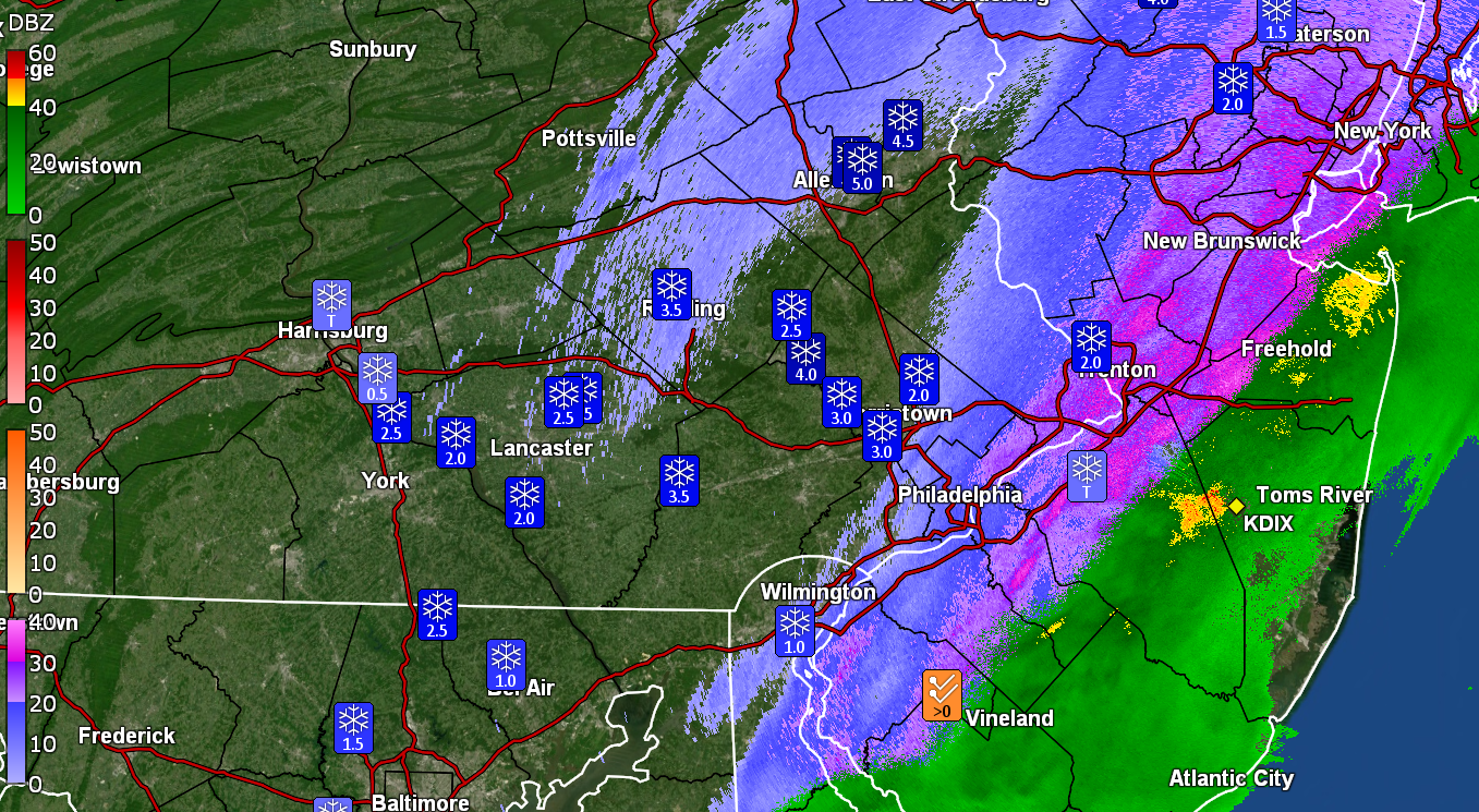 4. Looks like 2” on my webcam in Levittown which is insane considering there was a dusting when I left at 10:45. Can anyone confirm that? I’m seeing 2.1” at Ewing.