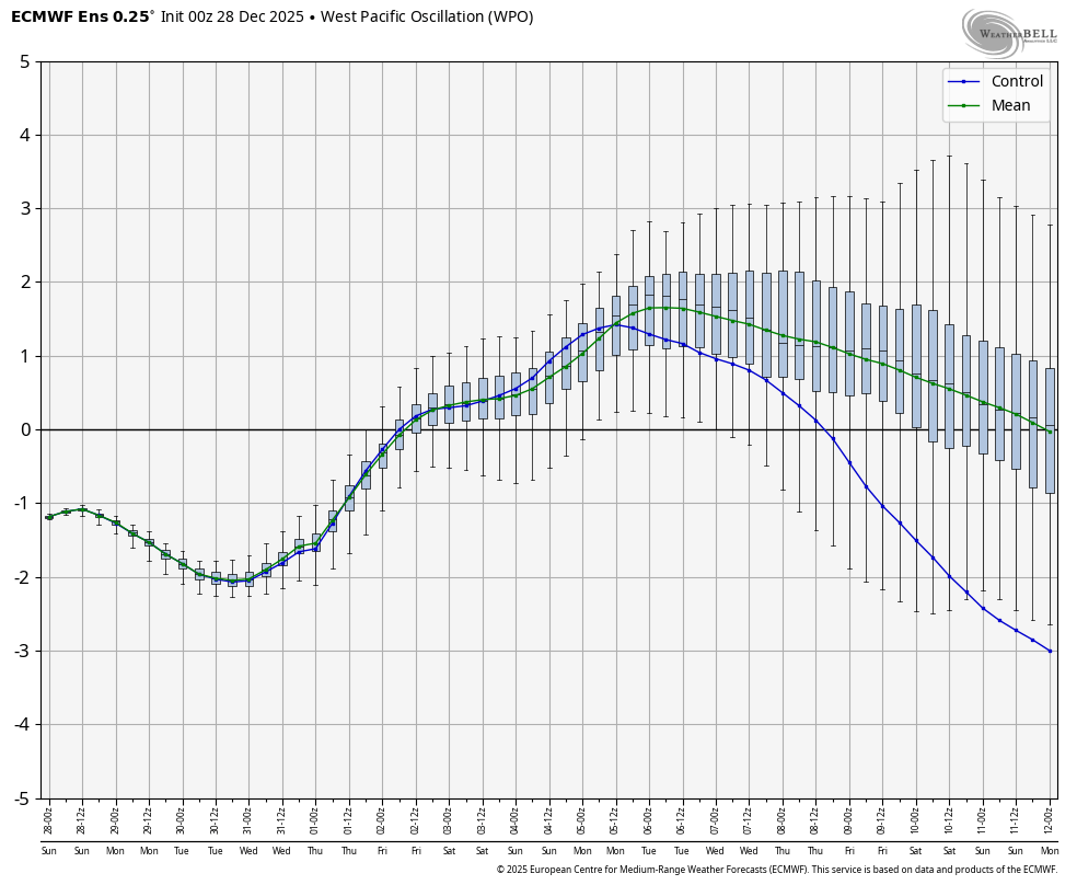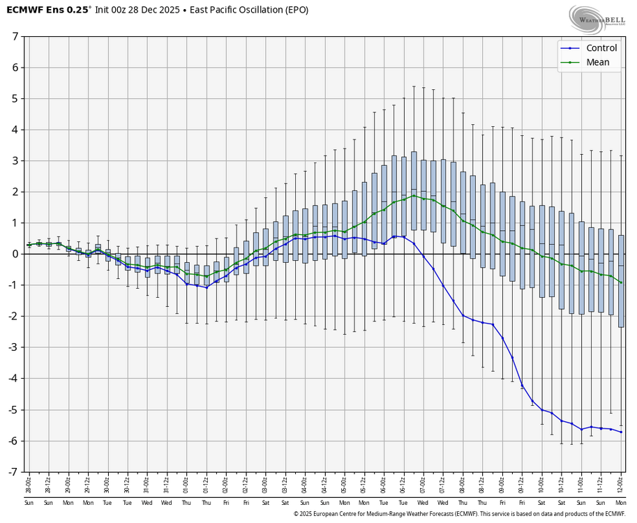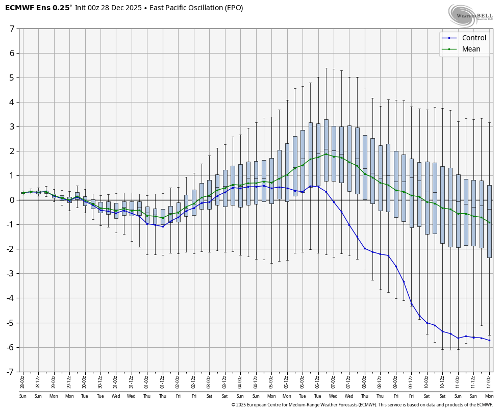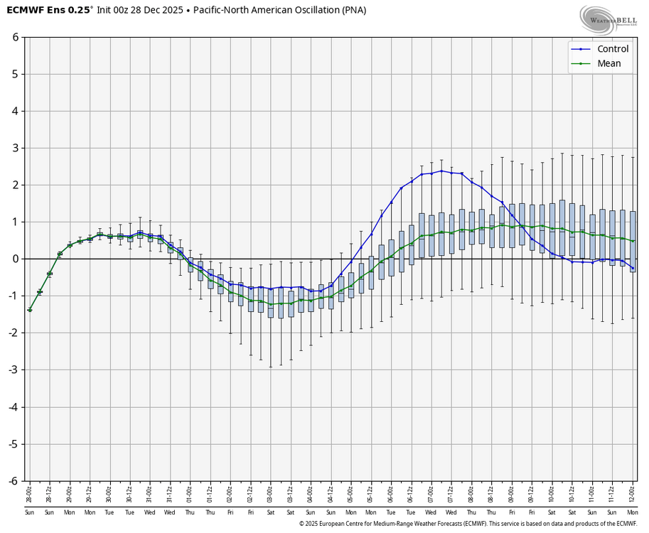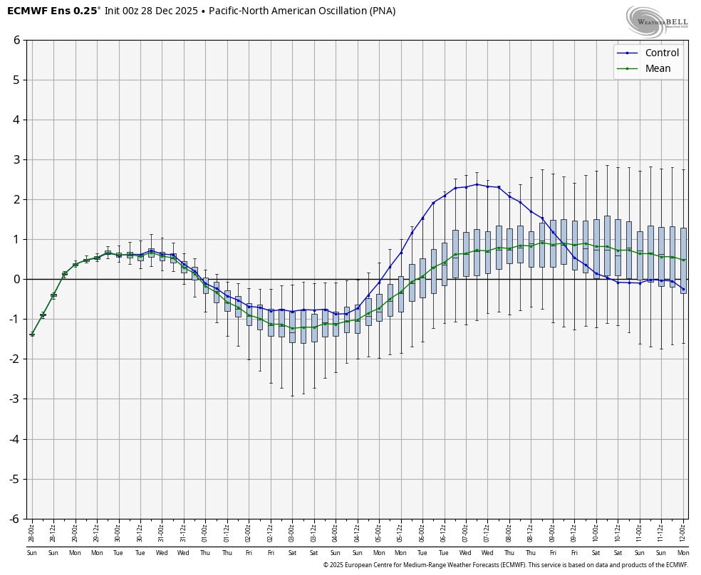 When you consider that both the EPS and GEFS have had a notable -PNA bias/notable warm bias from your area eastward and that all -ENSO -PNA Decs have transitioned to +PNA Jans, these consistently much better pattern maps for mid-Jan are quite encouraging. Just 5 days ago, the EW had this ugly -PNA for 1/12-18: