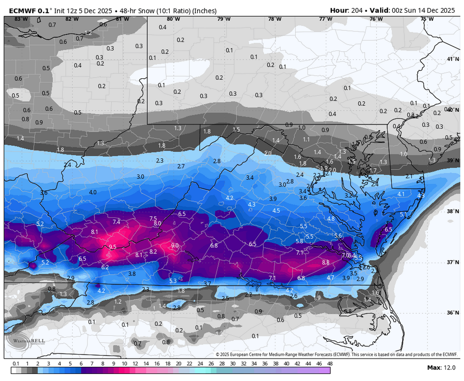 9. Bingo. Unless you live in C/NNE or near lakes you're gonna get skunked. Coastal track is dead and gone...until spring of course