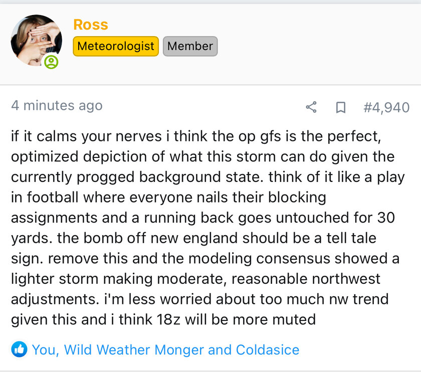 I really liked these thoughts from another forum. Basically we’ve seen the high end potential with plenty of lead time to go. This feels like we’ve backed into a really nice potential setup here if we can get it to ride more N/S, which Ops are more likely to show at this stage than Ens. We’re in that weird modeling liminal time frame now -