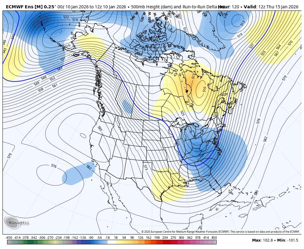 Ensembles have an interesting western ridge spike near the end of their run around 1/25. A few of the OP runs have been showing a bigger system around then too. I’d also still keep an eye on potential SWFE type system around 1/18-19 -