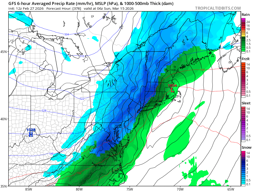 I guess it will finally 'split' coming up here, I feel a little too late anyway for any big fun but whatever Many have gotten solid snows this year. As far as a final warming it does not completely obliterate the SPV coming up here so technically it is still intact in some way. When you start to lose the idea of any cohesiveness of the SPV then it is considered done which does not look like it through at least mid March. Typically the final warming happens from the last week of March through 3rd week of April but as we know can happen before or after that timeframe. Sorry been on vacation starting to bring things back to normal for the work week coming up. Edit: Wanted to add this because this does show the overall structure does split besides one random layer. So this should hit the troposphere rather quick. https://www.stratobserve.com/fcst_ell_vert -