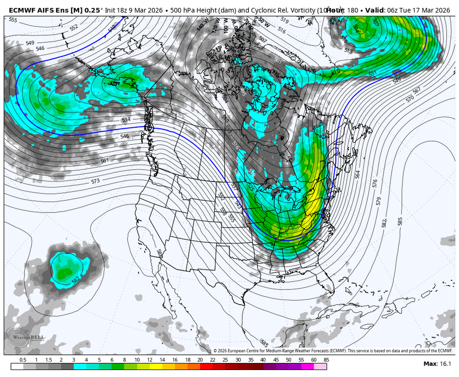 Trough early next week looks very progressive. Still many days away, but no model is spinning up a storm right now except for maybe northern U.S.