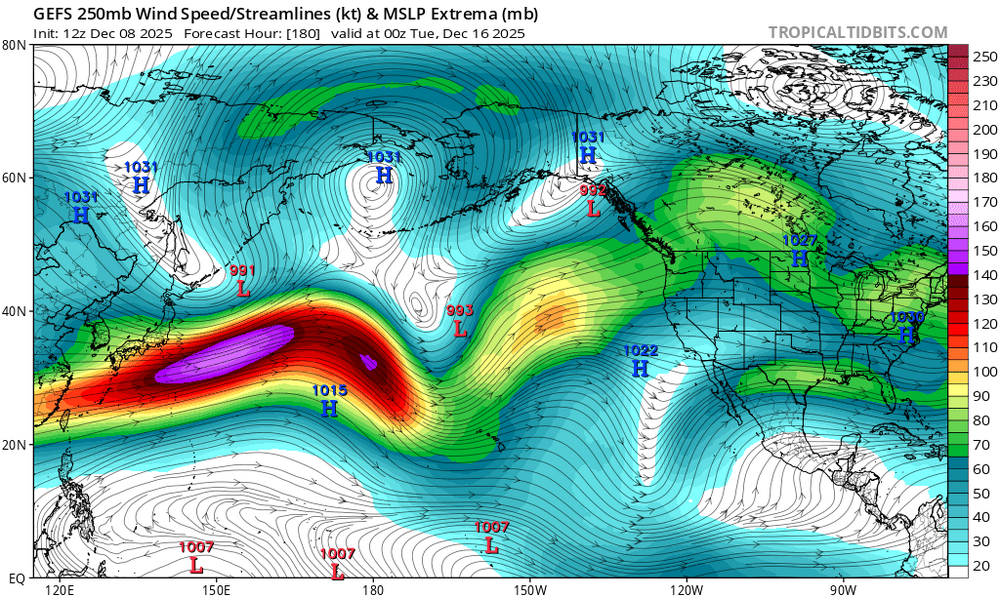 I suspect that the issues the models have been having long range are related to the much faster Northern Stream of the Pacifc Jet which continues. It’s not typical to get a strong -WPO +EPO couplet at the the same time in December. So the shortwaves in the fast Pacific flow are lowering heights over Eastern Alaska while the -WPO ridge stands firm. At least into mid December the +EPO and stronger Pacific are trying to have the ridge roll out into the Plains while the -WPO would have the ridge axis more in the West. So a tug of war between two competing influences that we normally don’t see at the same time. My guess is that the ridge eventually comes east at some point during the 2nd half of December as the Pacific Jet eventually wins out in these situations. Notice how the 10 year December strong -WPO composite features a more -EPO and a relaxed Pacific Jet. Much stronger Pacific Jet and unusual +EPO in mid-December for a very strong -WPO block Past 10 strongest December 500 mb -WPO blocks didn’t have to compete with such a strong Pacific Jet and +EPO