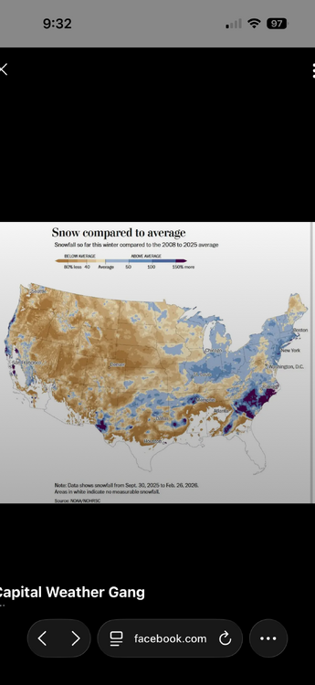 Here’s more data about how bad this winter has been for the majority of the U.S. Clearly, snowfall is below normal in most places.