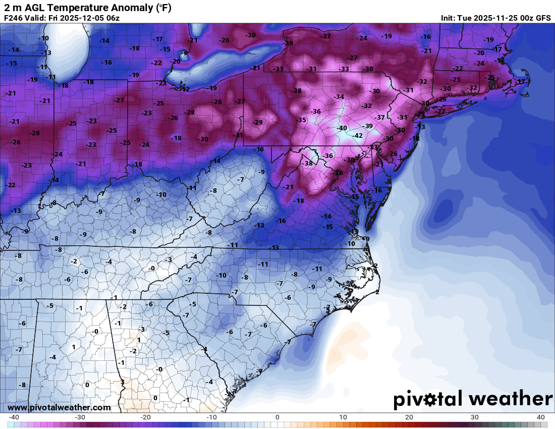 The first week of December is warming on guidance. MJO, teleconnections forecasts are all moving to warm phases. I don’t get the excitement at all. MJO phase 7 in November is actually N to cold but we are moving into December as we settle into that phase. I think this is leading to some false cold signals on guidance. Of course I’m speaking wrt where most of us live—close to the coast. The modeling showing more ridging in the SE and cold dumping over the central CONUS is much more in line with the tapestry of MJO phase 7 in December. -