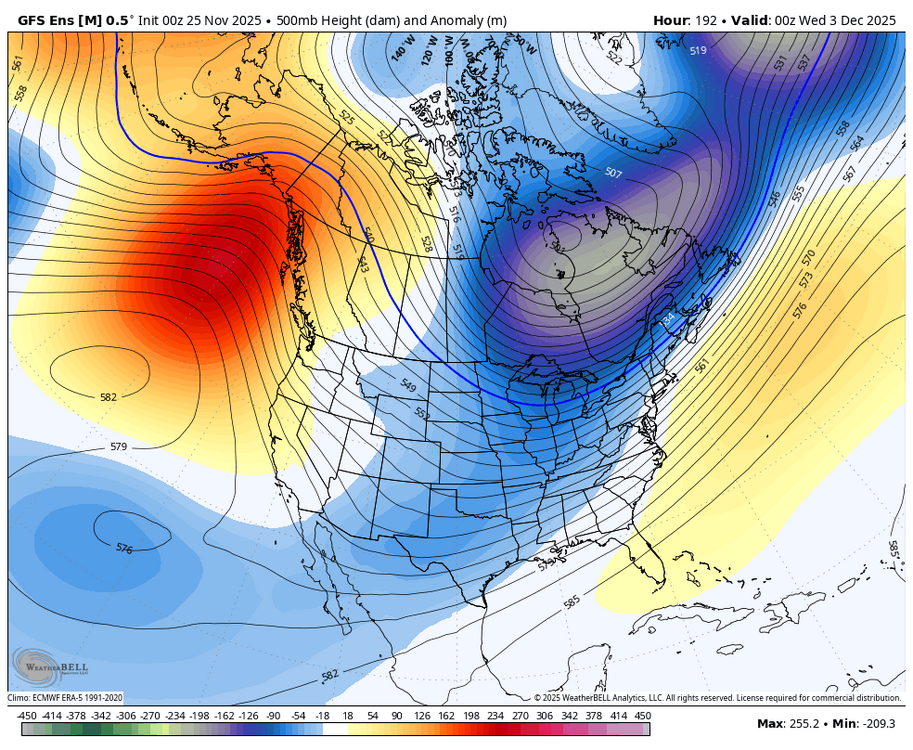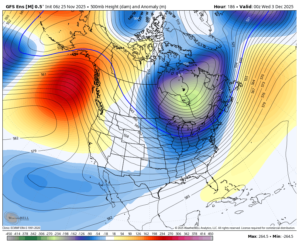 The colder trend for early Dec is happening on all ensembles including GEFS: these are all for a week from today at 7PM: watch the SER disappear: @donsutherland1@bluewave