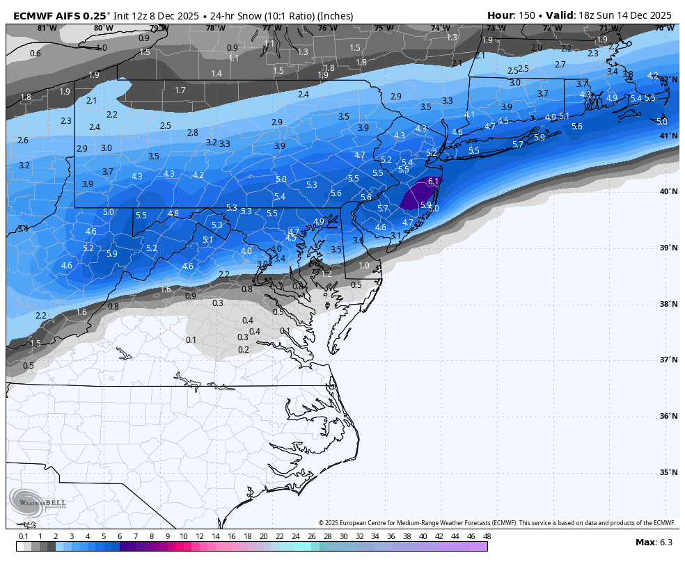 12z Euro AI closes the DC to NYC snow hole before Christmas, and ensures many of us are at 100% of December snowfall climo. Yes please.