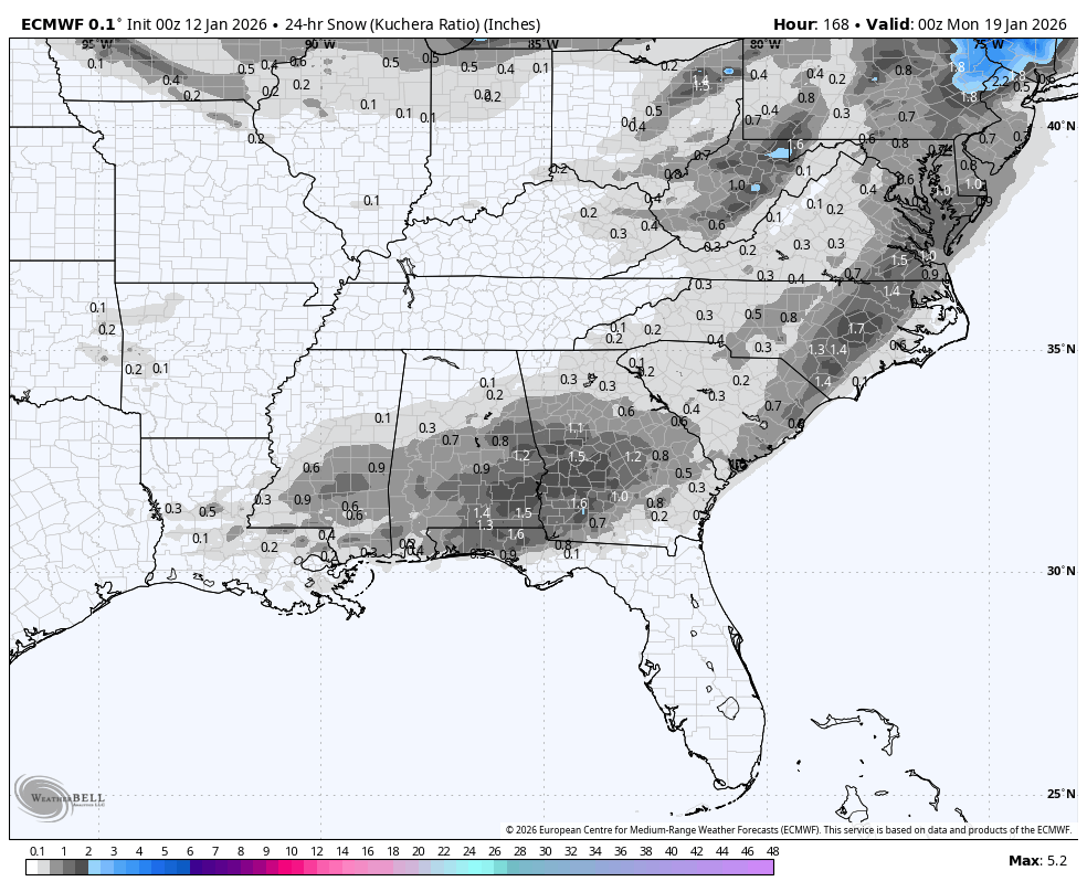 Of course the Euro has another near gulf coast snow event.