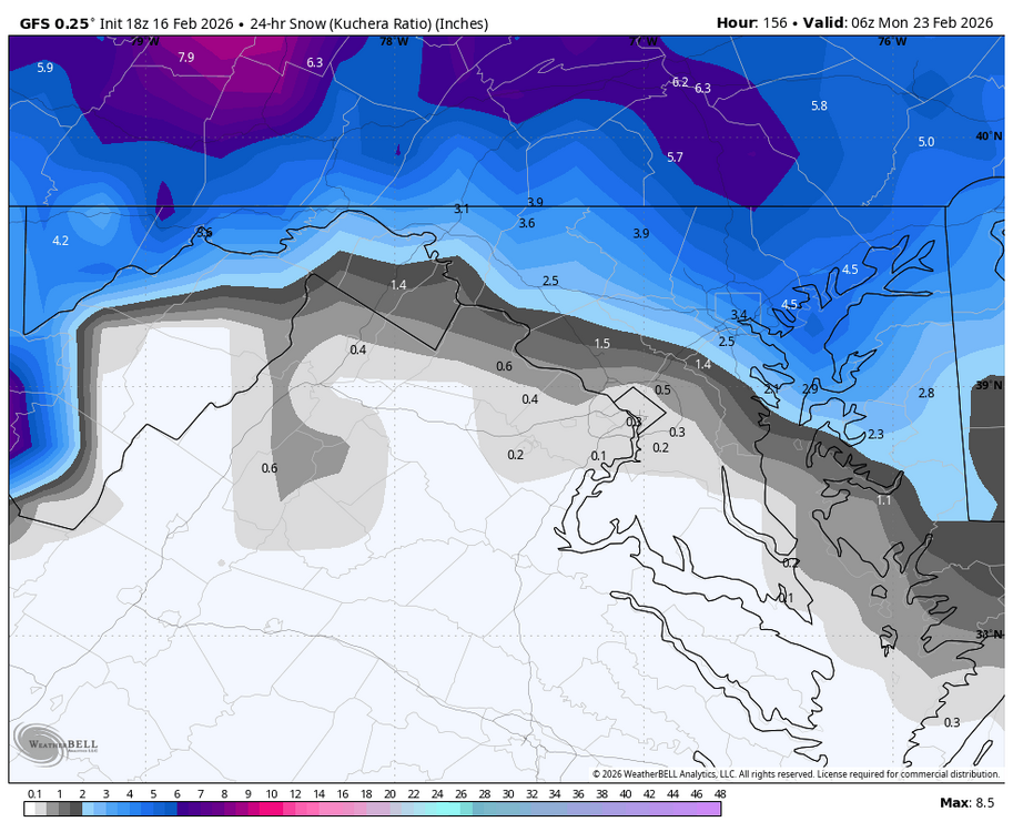 Reminds me of the Jan 2022 storm. I think Atlantic City got 18 inches and DC got nothing. Not say thing thats the final outcome but certainly plausible for sure. -