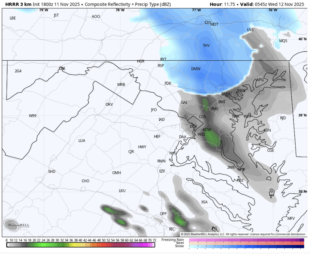 He might… that’s where some of the models have had some random light snow. Radar suggests it’s possible.