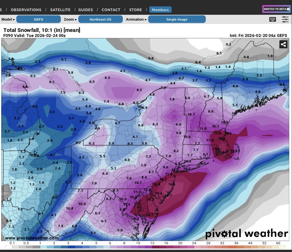6Z AI GFS is a nuke! Great run A foot from NY to BOS Back from the dead. Funny to watch this model go from a cutter to a complete whiff and way back NW over the past 4 days -