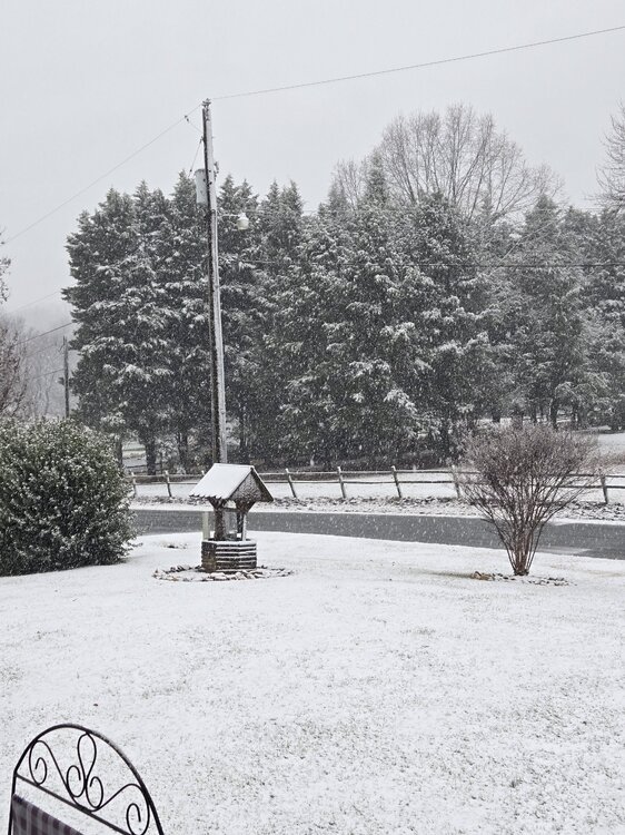 Ground covered in Stuart VA at the farm and now snowing nicely in Kernersville. No more mix. -