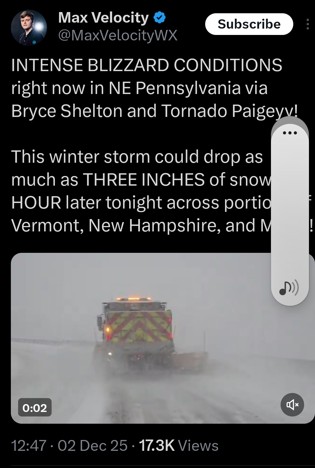 And someone who just got his degree in Met, calling this click bait "intense blizzard conditions"...as far as I know there was nowhere near wind to verify blizzard or 3-4"/hr anywhere, am I wrong? wasn't jack like just over a foot anywhere in the NE?