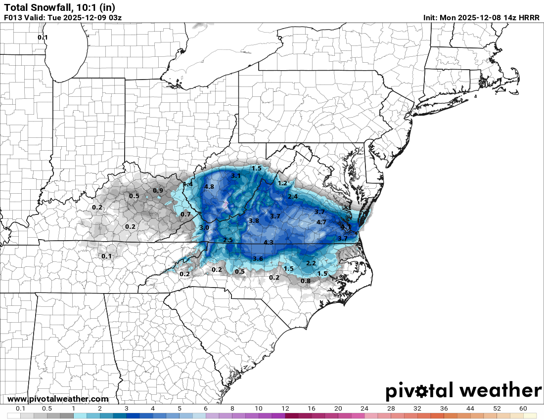 I am sure Virginia wasn't looking for average or above average snowfall and they are getting closer to it and its only December 8 - totally unexpected - could easily have happened around these parts = also these Clipper systems are not being handled well by the models or the arctic air - have to take them one at a time - this supposed warmup Christmas week is suspect too at this point